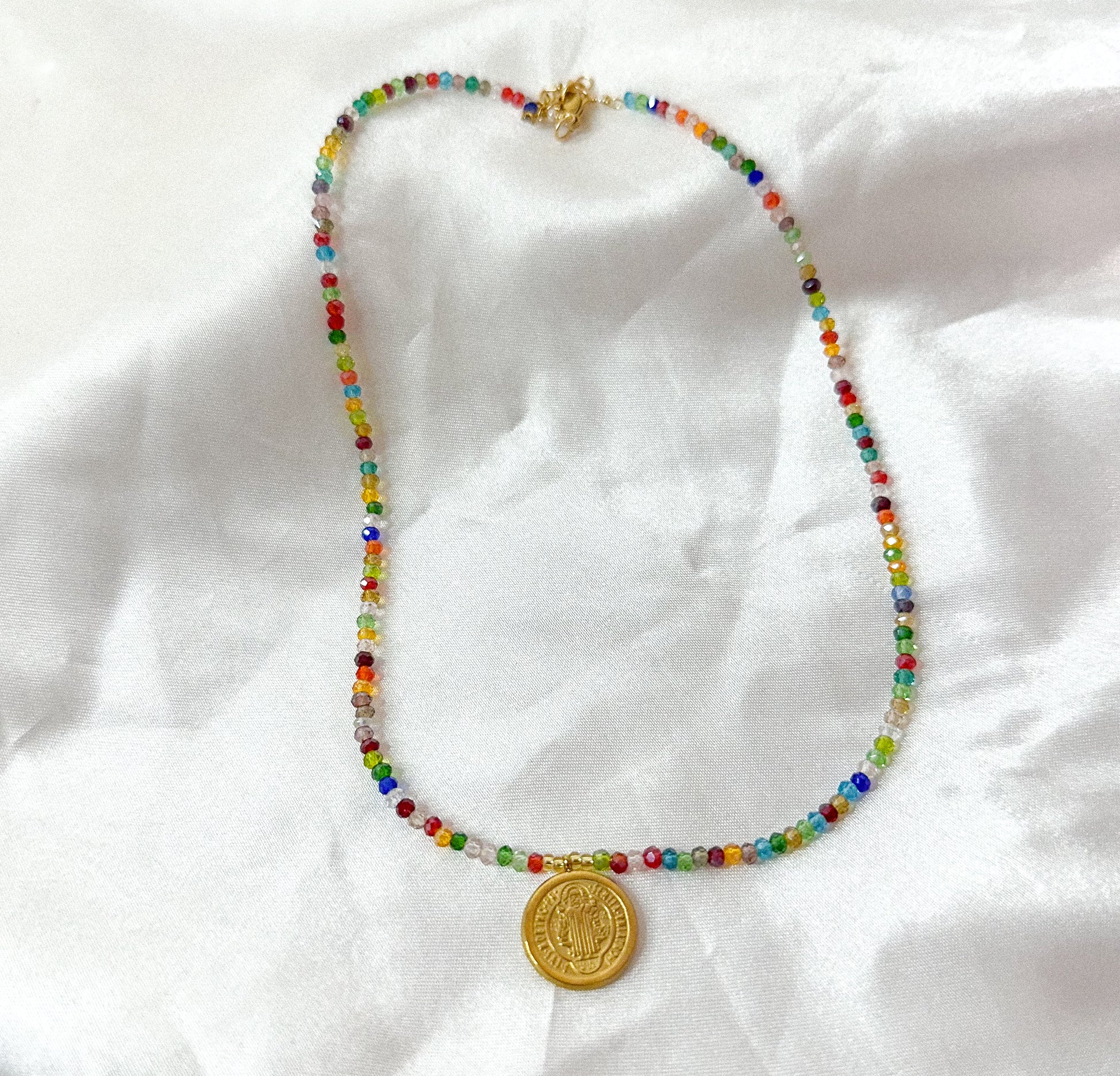 Get ready to stand out with our Beaded necklace! Featuring colorful beads and a Saint Benito pendant, this necklace adds a touch of whimsy and uniqueness to any outfit.